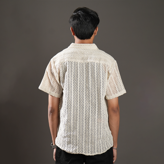 Cream Crochet Relaxed Fit Shirt