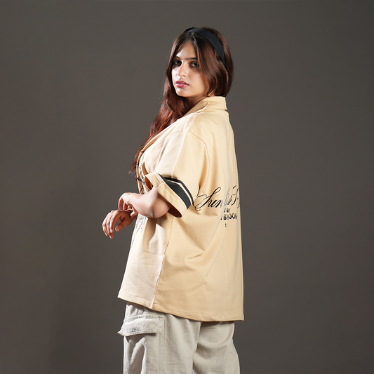 Cream Geometric Print Relaxed Fit Shirt