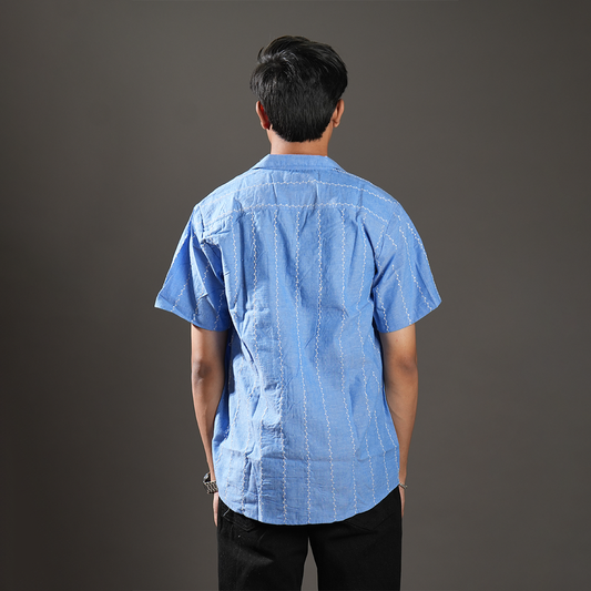 Black Thread Striped Embroidered Relaxed Fit Shirt